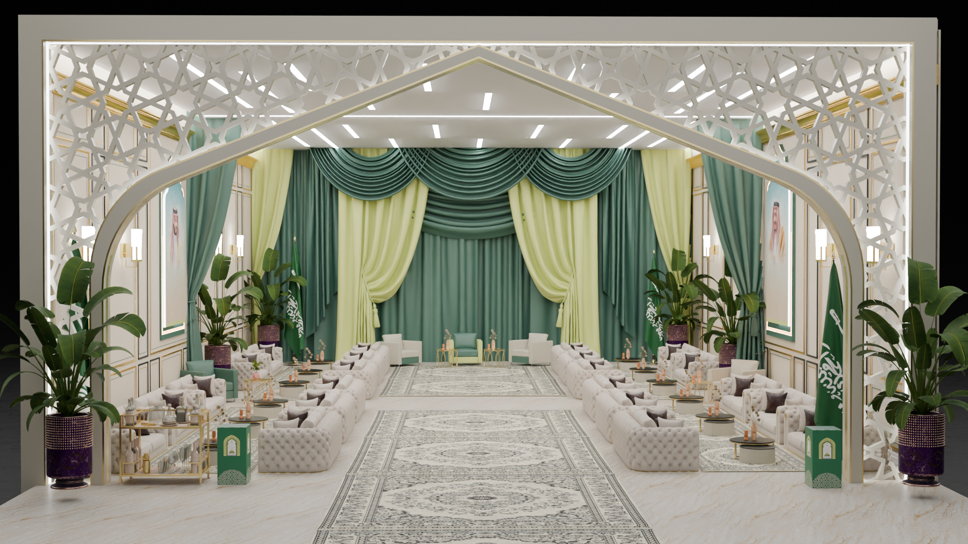 تصميم فراغي ورندر ثلاثي الأبعاد للأجنحة والمعارض والتركيبات كبيرة الحجم.